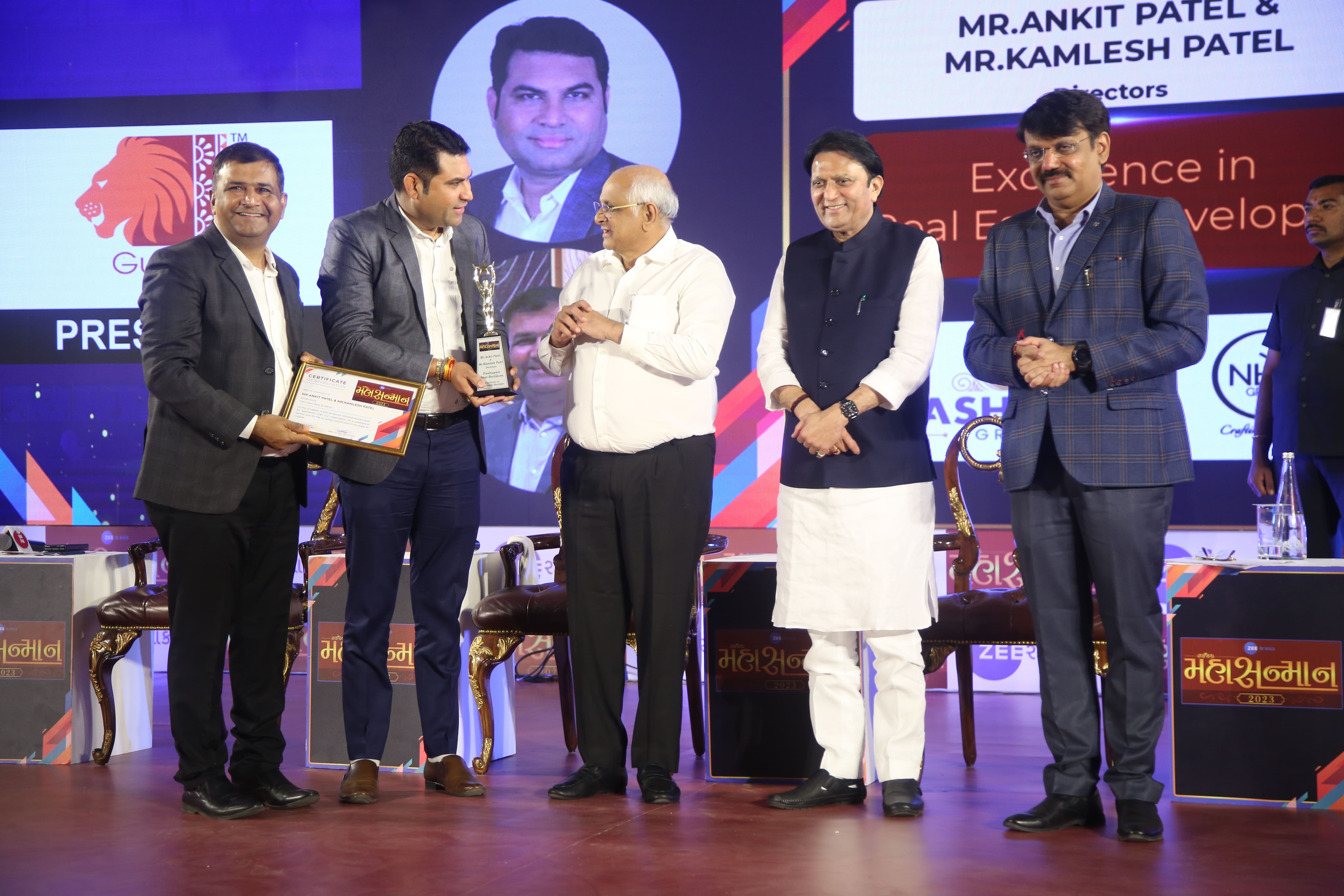 Honored to be Recognized for our Real Estate Development Excellence at Zee 24 Kalak Mahasanmaan 2023 by the esteemed Chief Minister of Gujarat, Shri Bhupendrabhai Patel.